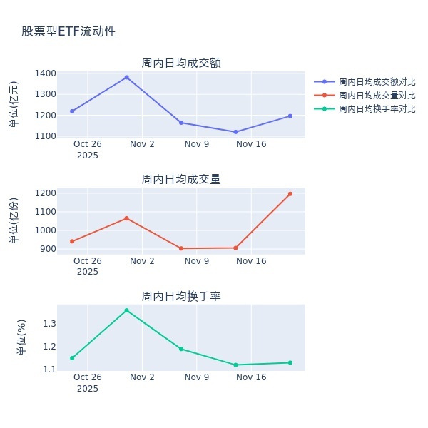 流动性方面,上周股票型ETF市场日均成交额增加6.8%,日均成交量增加32.1%,换手率增加0.01%。