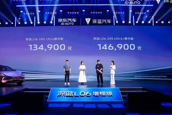 4月23日,深蓝L06增程版正式上市,新车共推出2款车型,官方指导价区间为13.49-14.69万元,限时权益到手价为127155元和138555元(权益至6月20日)。据悉,新车将在京东汽车独家销售。