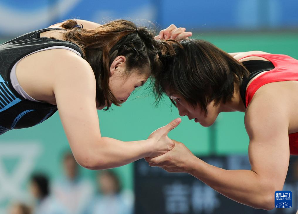 全运会摔跤比赛正在激烈进行中,专业运动员们在赛场上拼搏竞技。而在千里之外的四川马边,彝族孩子们在新球场上快乐摔跤的画面,同样展现着体育的精神和魅力。
