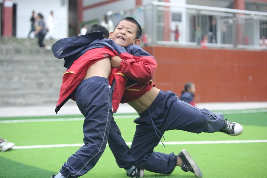 这一天壹基金乡村儿童足球项目的球场刚刚铺好,球门还没摆上。下课铃声一响,孩子们便欢呼着用他们最熟悉的彝族摔跤,让球场瞬间变成了欢乐的海洋。